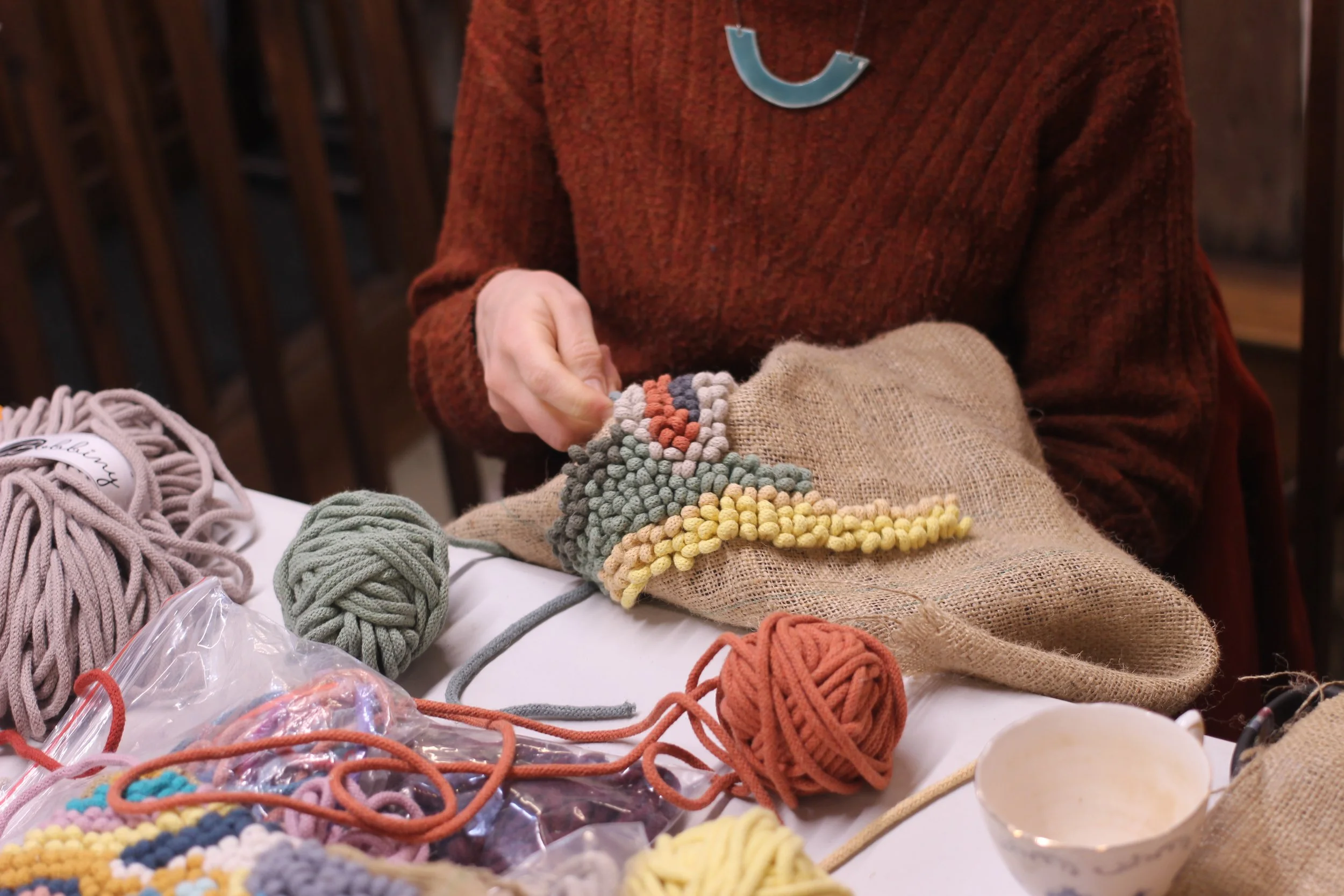 Batik | Book Binding | Braiding | Candles | Coptic | Jesmonite | Jewellery | Kumihimo | Lino | Macrame | Mosaic | Printing | Punch Needle | Rag Rugs | Upcycling | Weaving
